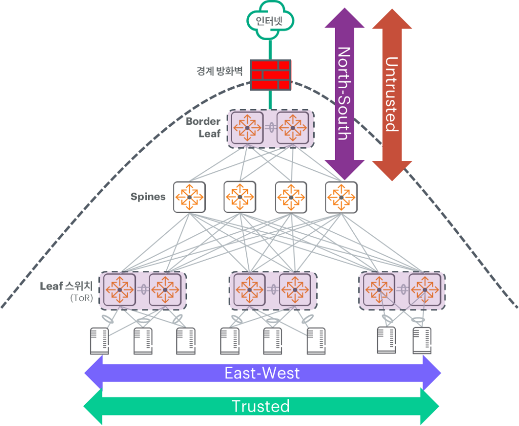 데이터센터 내부(East-West)에서 발생하는 트래픽이 데이터센터와 외부(North-South) 간의 트래픽보다 훨씬 더 중요해지고 있습니다.
