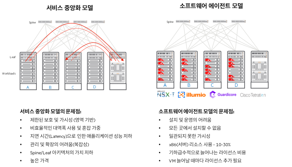 하지만 가상화, 클라우드 도입, 컨테이너화 등으로 인해 데이터센터 내부 트래픽(East-West 트래픽)이 급증하면서 심각한 보안 취약점과 운영 비효율성이 드러나고 있습니다.
