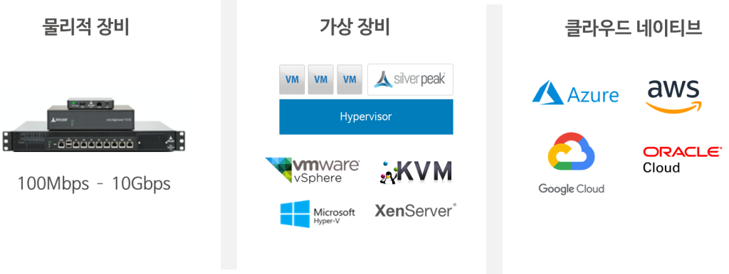 Aruba의 EdgeConnect SD-WAN 플랫폼의 가상 인스턴스는 클라우드 환경 인프라에 쉽게 배포해서 클라우드 환경까지 쉽게 연결할 수 있도록 합니다.