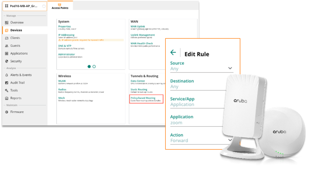 Aruba의 Microbranch 솔루션은 Aruba의 액세스포인트에 고급 SD-WAN 기능을 포함하여 이제 원격 근무자나 리테일 또는 기타 소규모 위치를 간단하게 보호하도록 돕습니다.