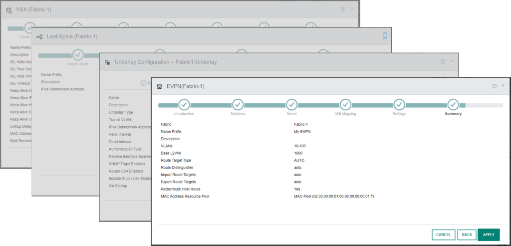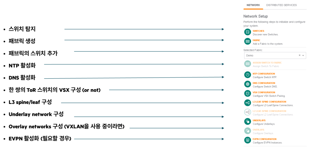 - 초보자도 전문가처럼: Fabric Composer는 마치 애플리케이션 설치 마법사처럼 직관적인 GUI 환경을 제공하며, 단계별 가이드(Step-by-step guidance)를 따라가며 복잡한 스파인-리프 패브릭을 손쉽게 생성할 수 있습니다.