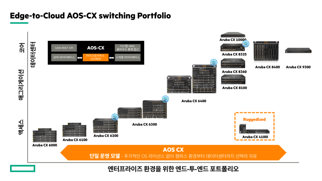 HPE Aruba Networking의 유선 메인스트림은 AOS-CX 스위치입니다.