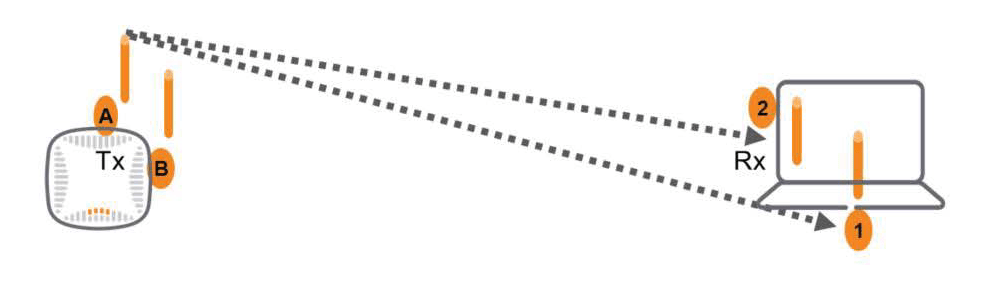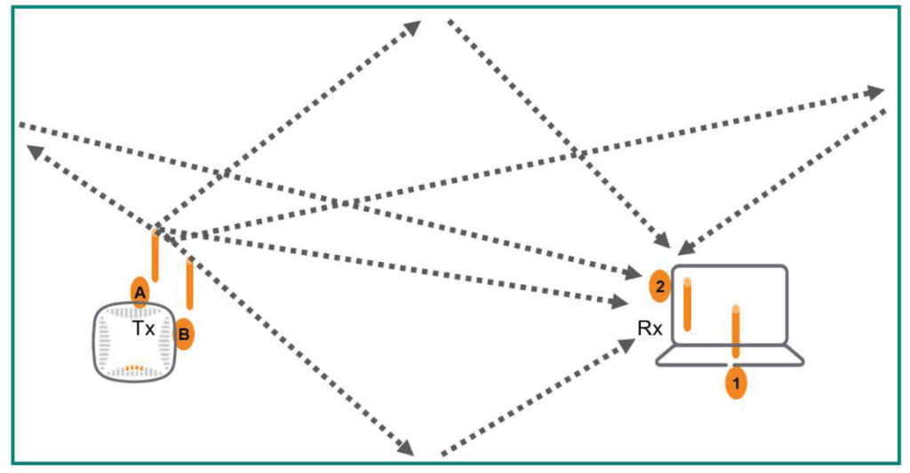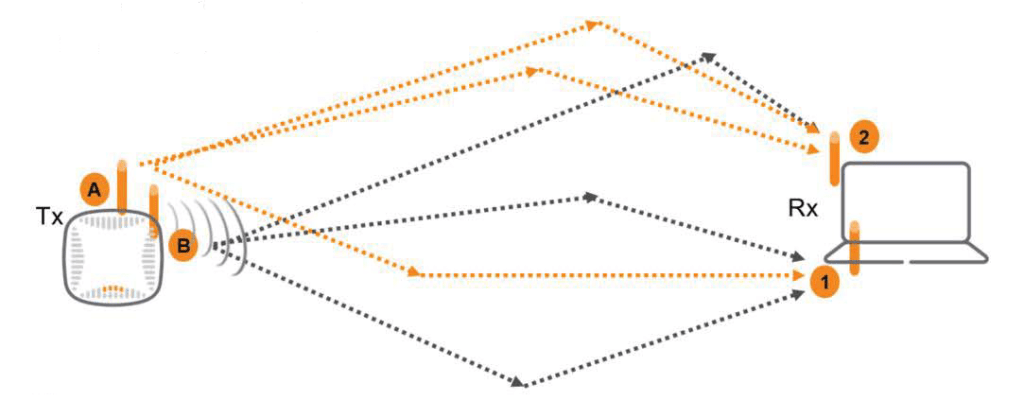 기존의 802.11 네트워크, 즉 무선 네트워크는 한 번에 하나의 안테나만 전송 또는 수신하도록 단일 입력/단일 출력(SISO) 기술을 사용합니다. 송신기는 무선 신호 처리를 위해 보내고 받는 양쪽 안테나 중 하나로 전송을 보냅니다.