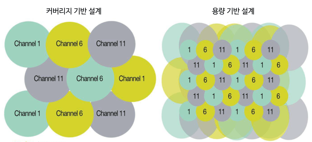 무선 네트워크는 주로 커버리지(적용 범위)나 용량을 고려하여 설계합니다.