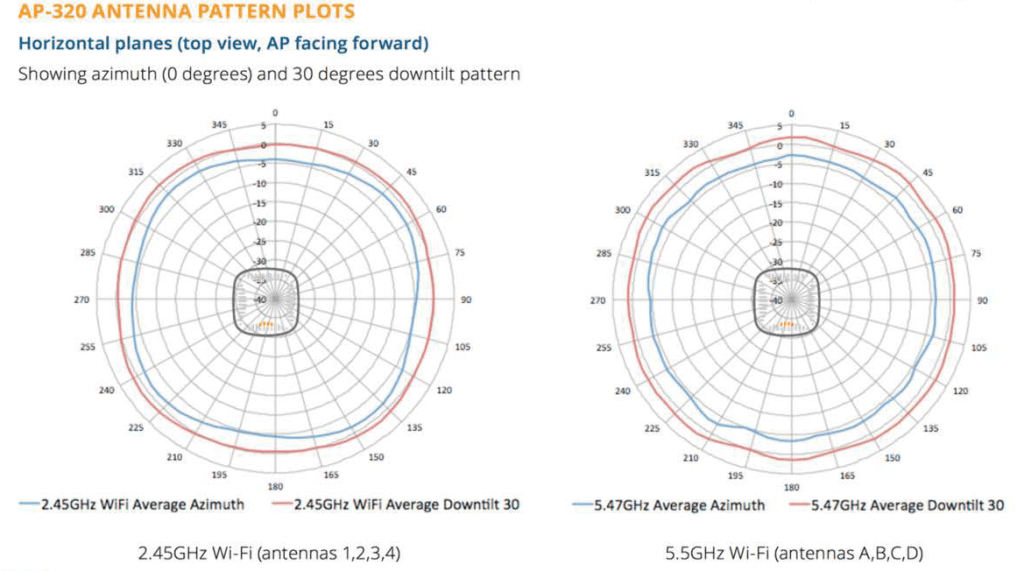 대부분의 제조사는 AP에 대해 수평 및 수직 커버리지 영역을 표시하는 방사 패턴을 제공합니다.