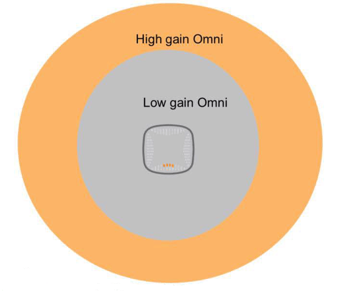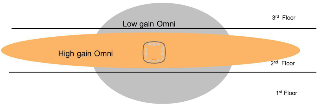 높은 이득 옴니(High Gain Omni)는 신호를 수평으로 넓게 밀지만, 수직으로는 커버리지를 잃습니다.