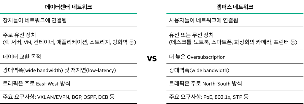 데이터센터 네트워킹 vs 캠퍼스 네트워킹