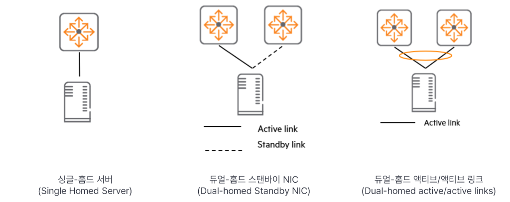 | 싱글-홈드 서버 | 액세스 스위치에 단일 연결 | 없음 | 권장되지 않음 |