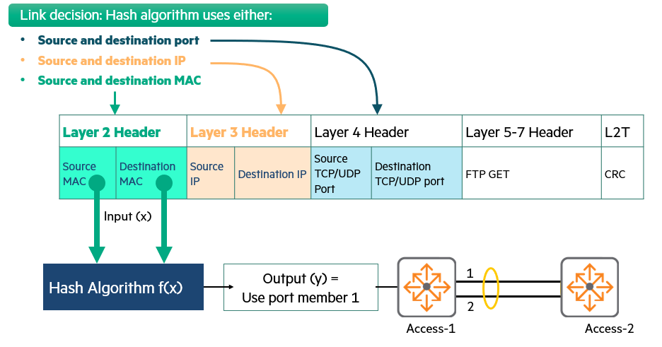 작동: 스위치는 해시 알고리즘을 통해 얻은 결과에 따라 해당 패킷이 사용할 멤버 포트를 결정합니다.