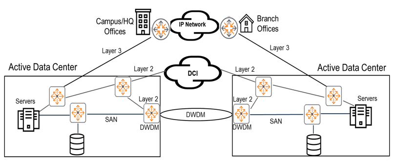 VXLAN 및 EVPN과 같은 기술도 DCI를 위한 옵션이며, WAN 링크와 같은 L3 세그먼트를 넘어설 수 있다는 장점이 있습니다.