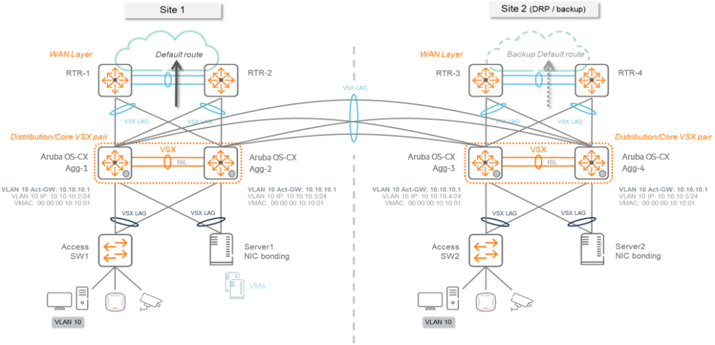 각 사이트가 독립적인 VSX 쌍을 운영하므로, 설정과 관리가 매우 쉽고 스위치나 케이블이 고장 나도 안정적으로 대처할 수 있습니다.