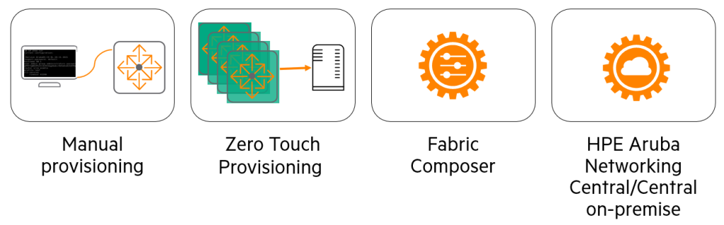ZTP와 같은 자동 프로비저닝 옵션이나 Central, Fabric Composer와 같은 도구를 활용하는 경우가 늘고 있습니다.