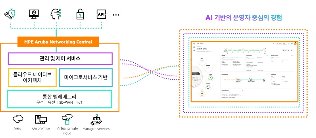요약하자면, HPE Aruba Networking Central은 클라우드의 유연성과 AI 기반의 지능을 통해 복잡한 네트워크 관리를 단순화하고 자동화하는 포괄적인 솔루션이며, 민감한 환경을 위해 온프레미스 배포 옵션까지 제공하여 다양한 고객의 요구를 충족시킵니다.