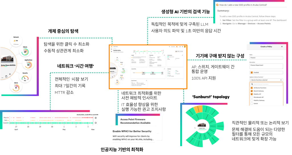 HPE Aruba Networking Central은 오늘날 IT 운영에 비할 데 없는 단순함을 제공하는 강력한 클라우드 관리 네트워킹 솔루션입니다.