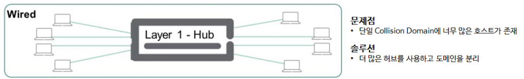 물론 앞서 얘기한대로 Layer 1 장치인 허브는 더 이상 사용하지 않고 Layer 2 스위치로 대체되고 있어