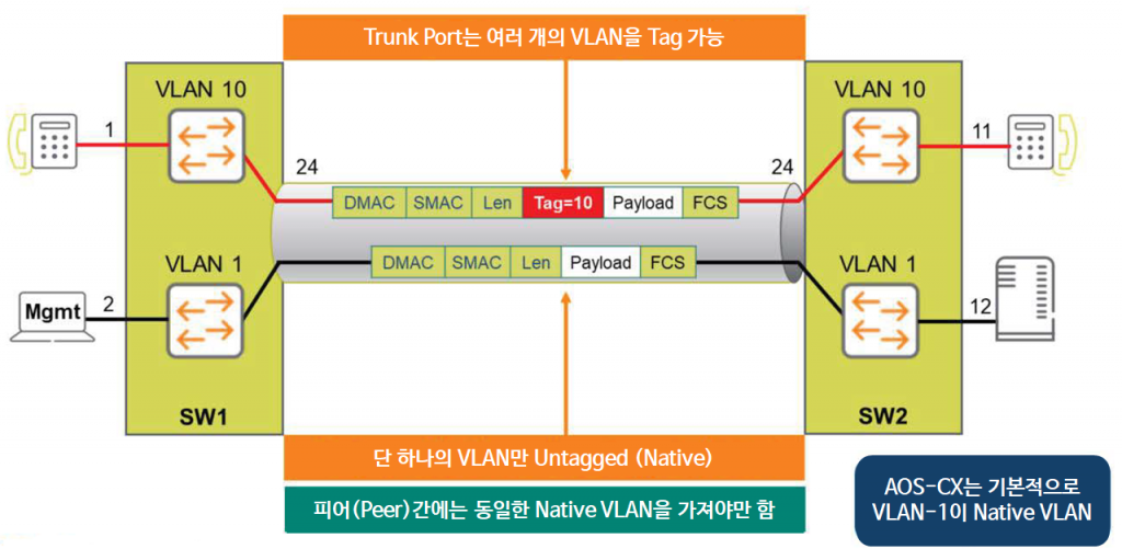 802.1q 표준에서 관리자는 Layer 2 헤더 안에 Tag 또는 VID가 포함되지 않은 프레임을 사용할 수도 있습니다.