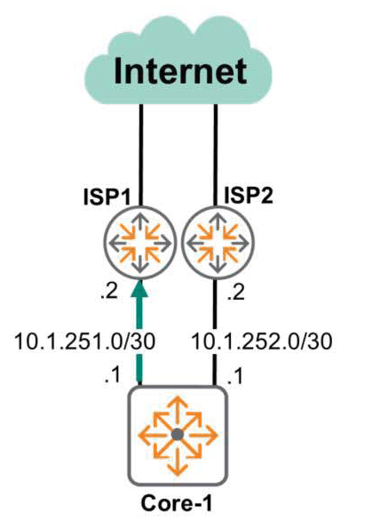 Core-1(config)# ip route 0.0.0.0/0 10.1.252.2 distance 10