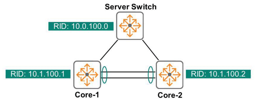 우리가 그림의 토폴로지를 보면서 Server Switch, Core-1, Core-2 스위치를 구분하는 것처럼 라우터는 10.0.100.0, 10.1.100.1, 10.1.100.2라는 것으로 식별하게 됩니다.