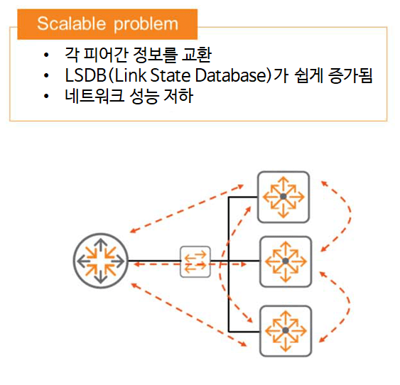 브로드캐스트 네트워크 유형에서는 각 라우터에 여러 피어가 있을 수 있기 때문에 이 값이 쉽게 증가할 수 있습니다. 이는 각 OSPF 피어에 대해 수백개 또는 수천개의 경로를 계산되어야 할 때, 라우터의 성능에 영향을 줄 수 있게 됩니다. 즉, 이러한 문제에 대한 솔루션이 필요하게 됩니다.