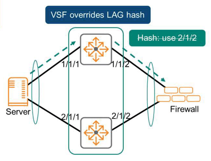 그러나 VSF는 해당 물리적 인터페이스를 선택하기 위해서 LAG 해시 함수를 사용하지 않습니다.