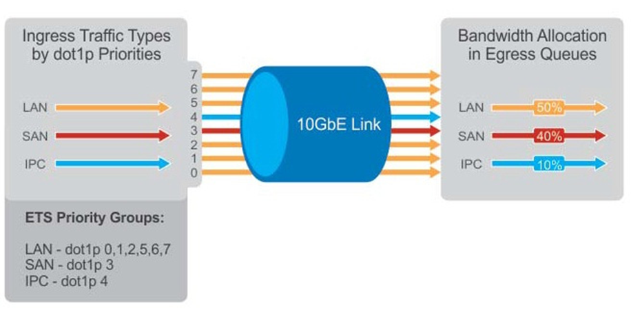 ETS는 모든 대기열에 대해 구성 가능한 대역폭 보장을 제공합니다.