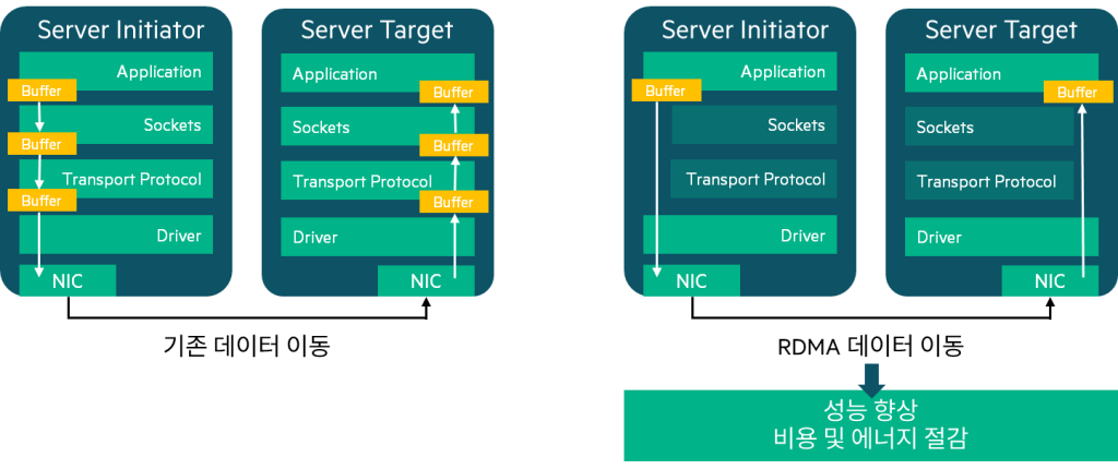 RDMA는 두 시스템의 CPU에 부담을 주지 않고 두 시스템의 작업 메모리 간에 데이터 전송을 용이하게 합니다.