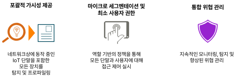네트워크에 연결되는 모든 장치(IoT 포함)에 대한 실시간 가시성을 확보하고, 해당 단말이 어떤 네트워크 리소스를 활용하고 있는지, 그러한 사용이 적절한 보안 정책을 준수하는지에 대한 강력한 인사이트를 Aruba Central을 통해 얻을 수 있습니다.