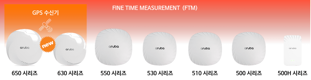 이러한 문제를 해결하기 위해 Aruba는 AP의 GPS 수신기를 내장합니다. 그리고 Wi-Fi 6와 Wi-Fi 6E 모델 모두 FTM(Fine Time Measurement) 기술을 적용합니다.