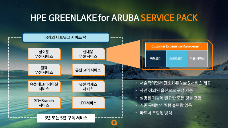 이러한 모델을 Aruba는 GreenLake 모델로 서비스하고 있으며, 이번 ATM’22에서 또 하나의 혁신적인 모델로 Service Pack Offering을 제공합니다.