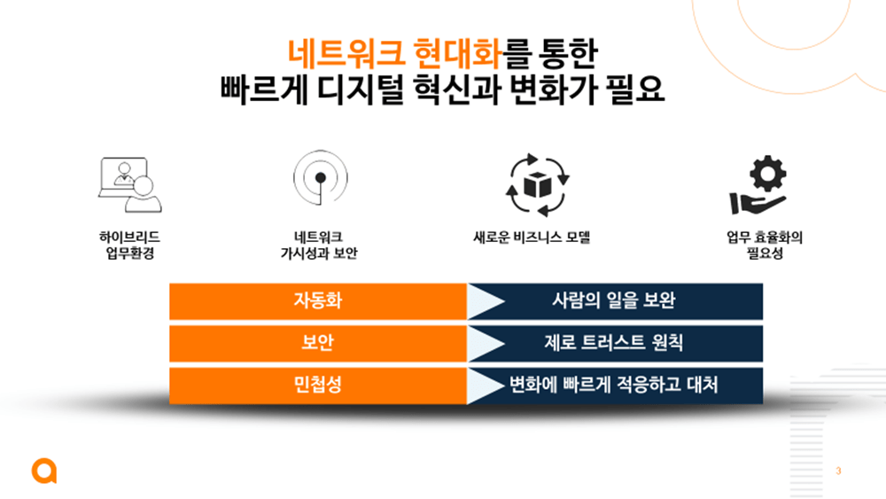 현대화된 네트워크 인프라에서 필요한 것은 3가지입니다.