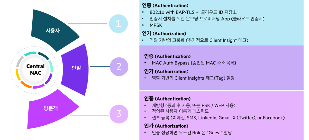 기업들이 멀티 벤더 환경을 사용함에 따라 적응형(어댑티브) 및 확장 가능한 네트워크 접근 제어(NAC) 솔루션의 중요성이 더욱 강조됩니다. 클라우드 네이티브, AI 기반 HPE Aruba Networking Central NAC는 액세스 관리에 대한 극히 간소화된 접근 방식을 제공하여 제로 트러스트 전략을 더욱 지원합니다.