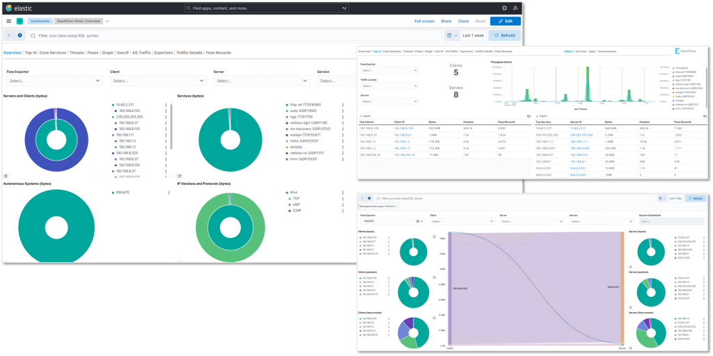 IPFIX 데이터를 활용하면, 아래와 같이 다양한 시각화 솔루션과 연동할 수 있습니다.