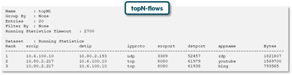switch(config-ti)# monitor topN3 type topN-flows entries 20 group-by appid