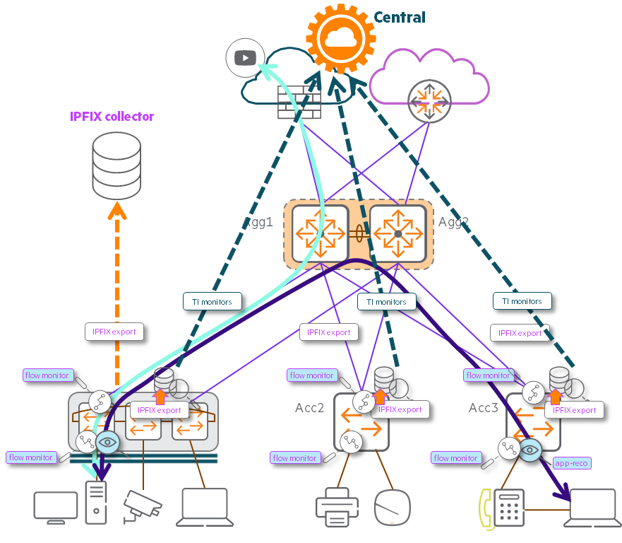 Traffic Insight(TI)는 CX 스위치 내부에서 IPFIX Collector 역할을 수행합니다.