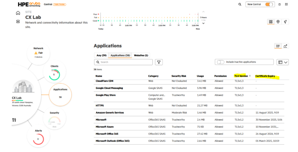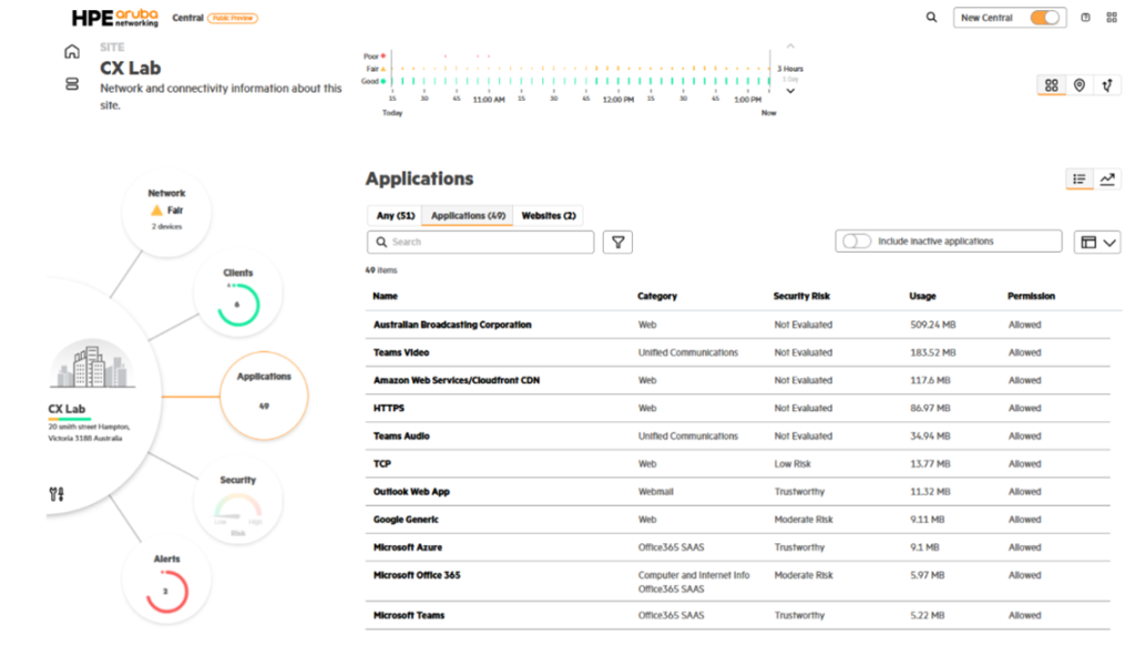 - Application Recognization(AR): HPE Aruba Networking Central(CNX)의 Foundation License에서 기본 제공