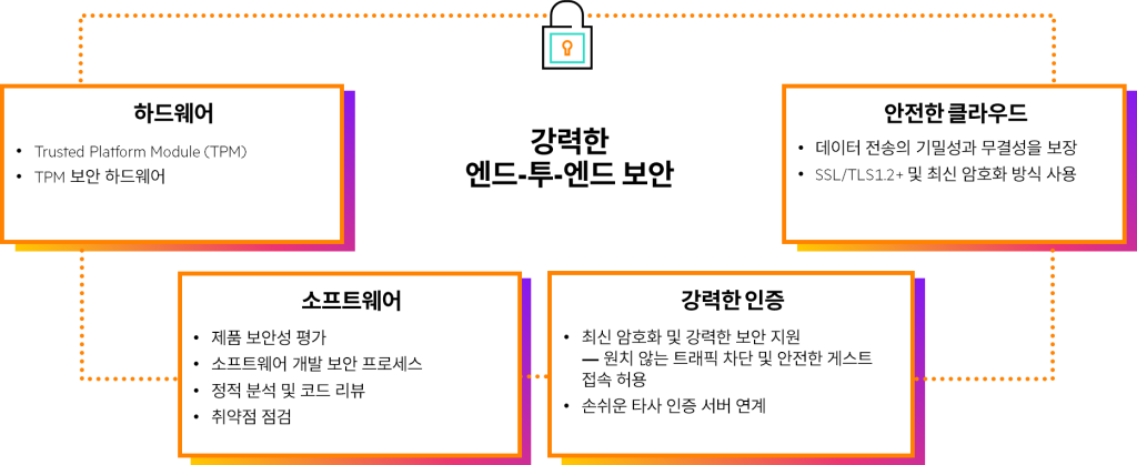 안전한 게스트 네트워크, 암호화된 연결, 자동 소프트웨어 업데이트를 통해 모든 사람의 정보를 안전하게 보호할 수 있습니다.