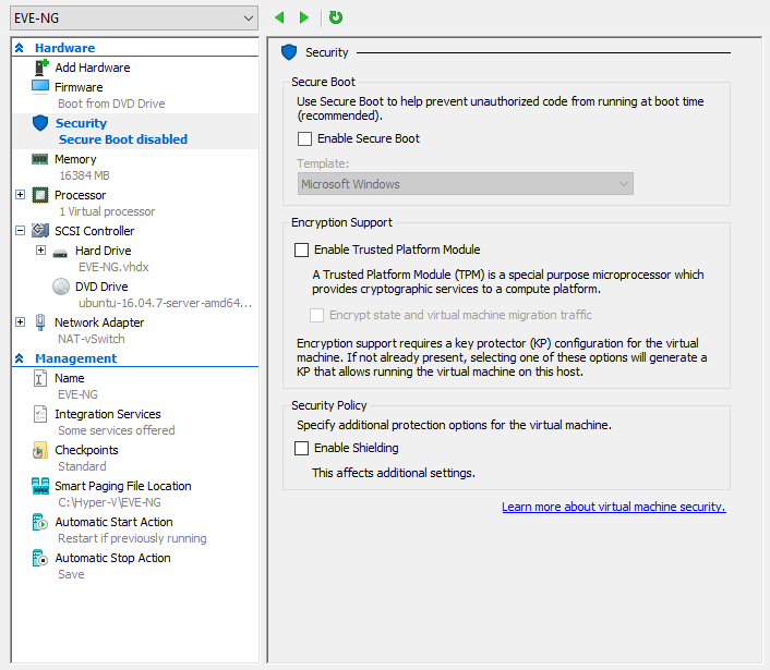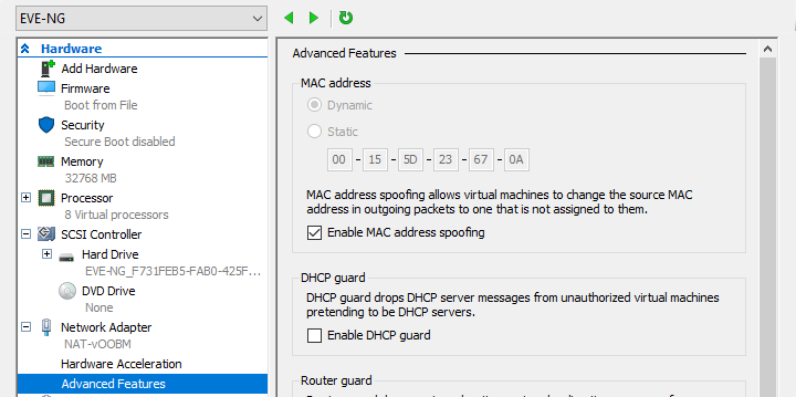 > Set-VMProcessor -VMName "EVE-NG" -ExposeVirtualizationExtensions $True