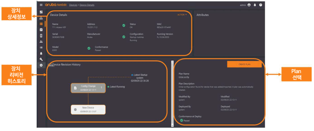그리고 하단의 리비전 히스토리 부분에는 장치에 적용된 구성 변경에 대한 내역을 확인할 수 있습니다.