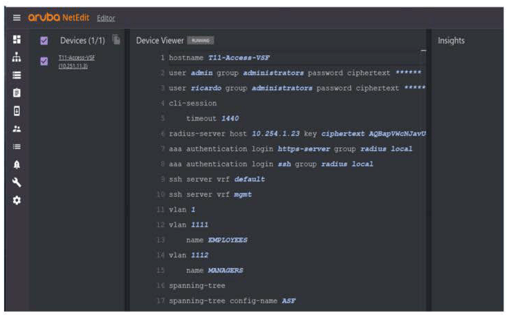 또한, NetEdit에서 각 스위치에 구성되어 있는 구성 정보(config 정보)를 별도의 명령어 없이 바로 확인할 수 있습니다.