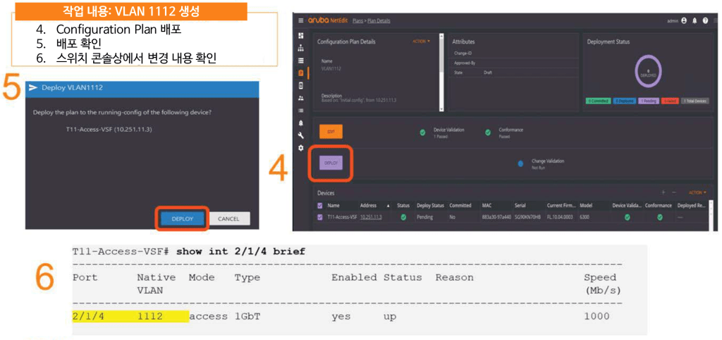 예를 들어 인터페이스 2/1/4에 VLAN 1112를 구성하고자 한다면 아래와 같이 진행합니다.