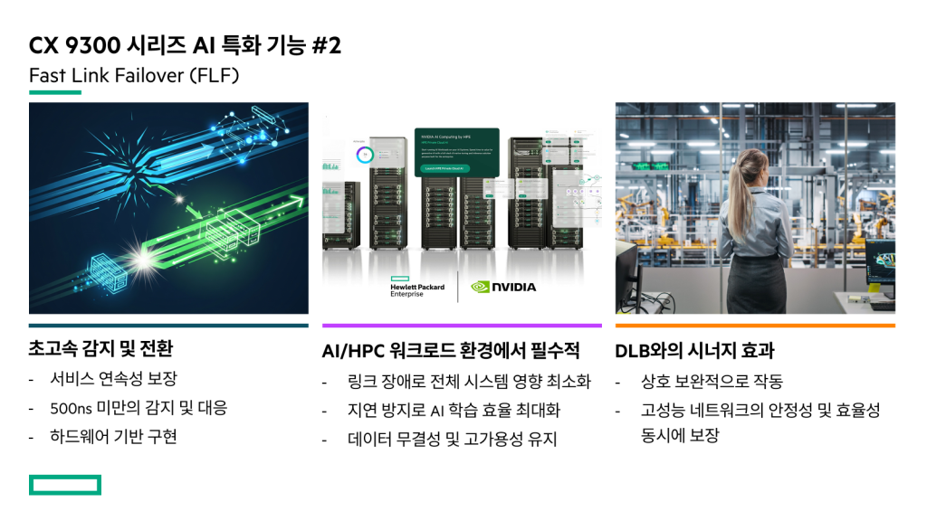 이를 지원하기 위해 동적 로드 밸런싱(DLB)은 효율적인 로드 밸런싱을 달성하고 RoCEv2 네트워크에서 혼잡을 방지하는 데 이상적입니다. HPE Aruba Networking CX 스위치는 HPE AI/HPC 솔루션과 통합하여 UEC와 함께 이러한 혁신의 일부가 될 수 있게 되었습니다.
